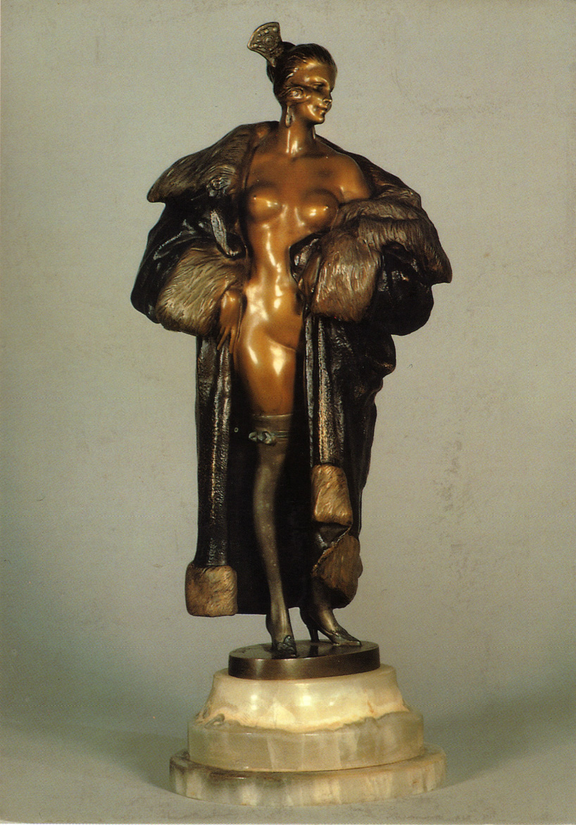 Para terminar la semana una pequeña joyita de las que puedes encontrar en el Museo Art Decó de la Casa Lys en Salamanca: “Cabaretera”, escultura en bronce y mármol de 42cm realizada por el escultor austriaco Bruno Zach (1891-1935) Es de estilo Art Decó. Sigo sin saber qué me gusta más si el abrigo, las medias con el lazo o los zapatos tan similares a los slippers con tacón que este año han empezado a visitar los escaparates.