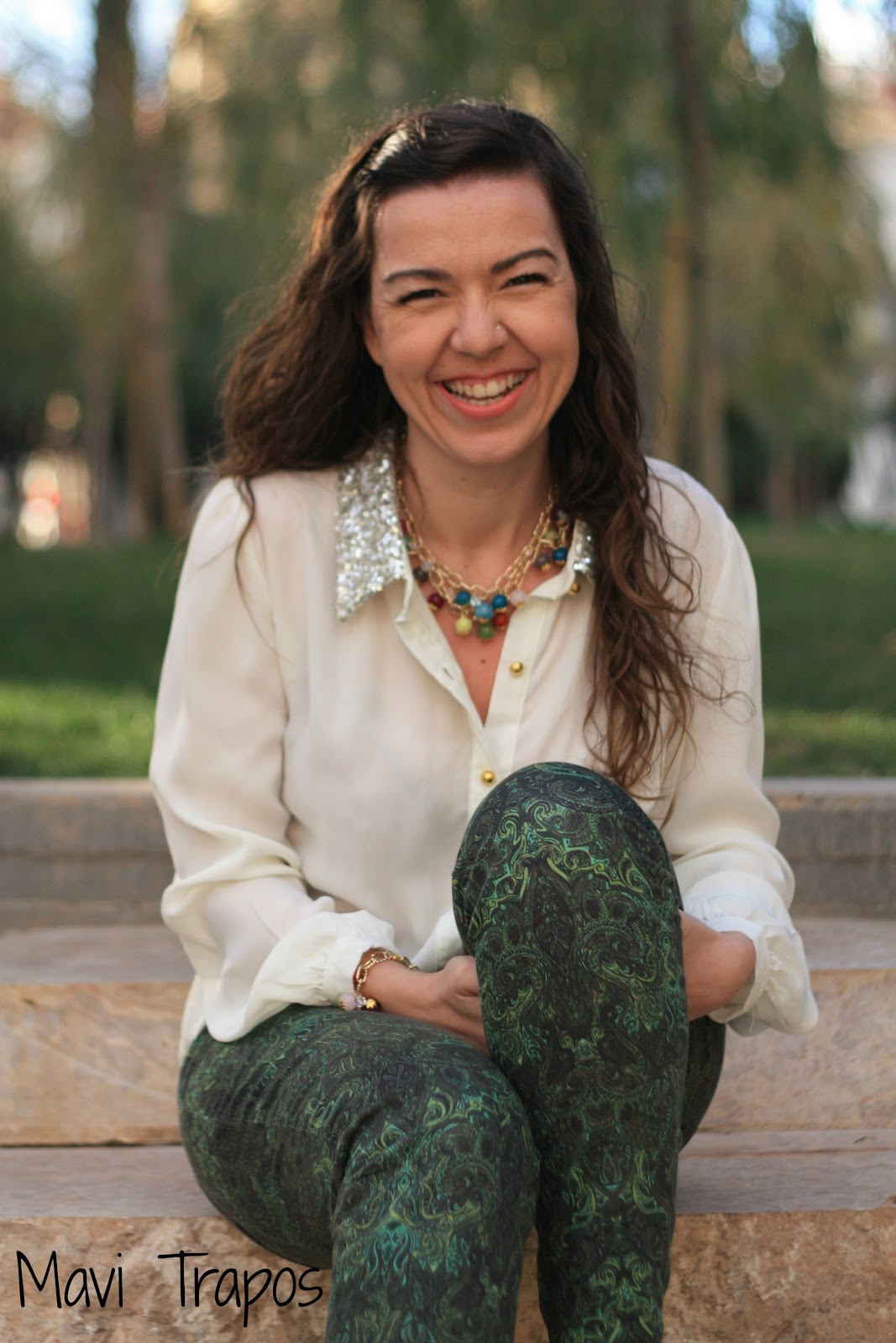 Aunque esta semana en Valencia han bajado muchísimo las temperaturas, la semana pasada aún disfrutábamos de los 20º así que apetecía salir a la calle en mangas de camisa y más, si la camisa es tan bonita como esta de La Lola Valencia, con un corte tan vintage y el cuello de brilli brilli pailettes lentejuelas.