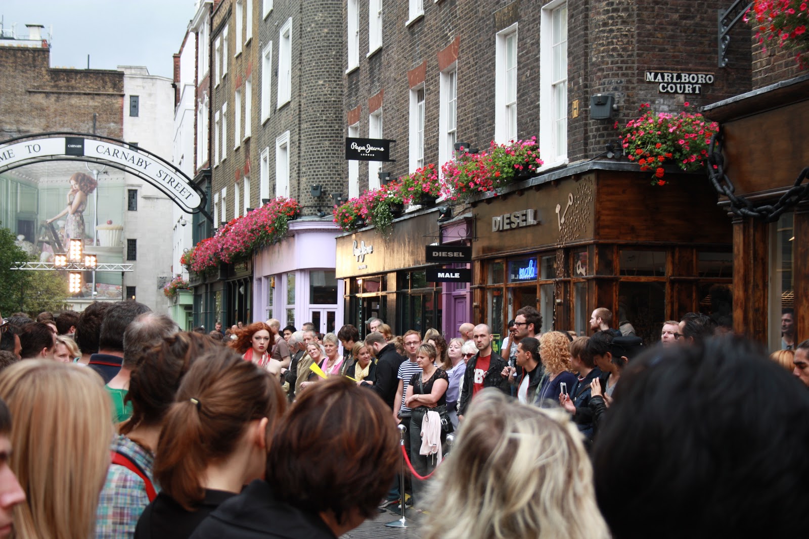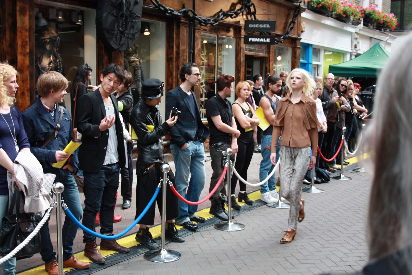 Paseando pro Carnaby Street nos encotramos que Diesel había organizado un pase de modelos en la calle con un grupo de rock tocando en directo además, a la gente que paraba a ver el espectáculo, le regalaban una bolsa de tela de la marca.