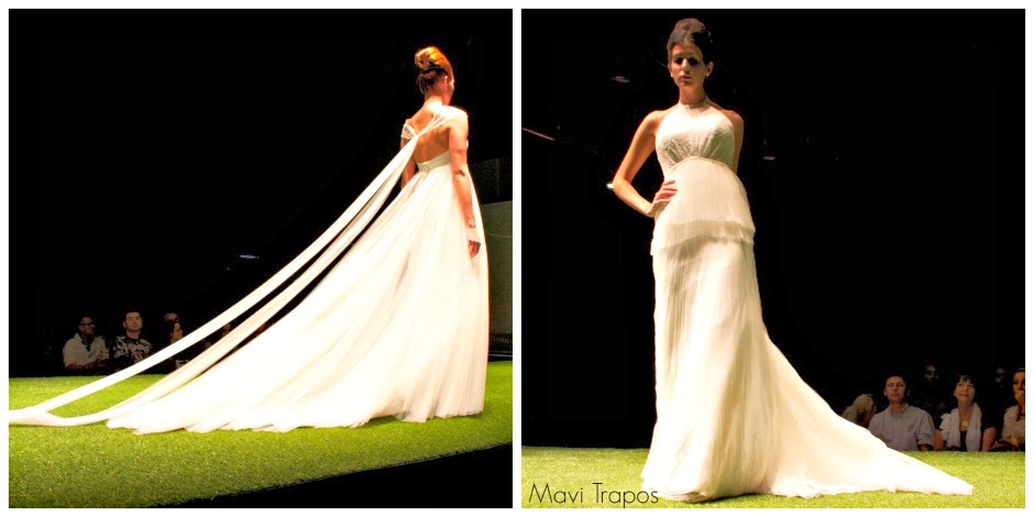 Este fin de semana ha sido completito: Fiesta y Boda, Showroom en Majose’s, Market en Ruzafa y yo malucha… ley de Murphy… afortunadamente pude disfrutar del desfile de Miquel Suay y su colección para 2014 Crisálida, una colección que juega con las formas y los volúmenes, con los pliegues y las texturas y que viste a una novia ante todo muy femenina.