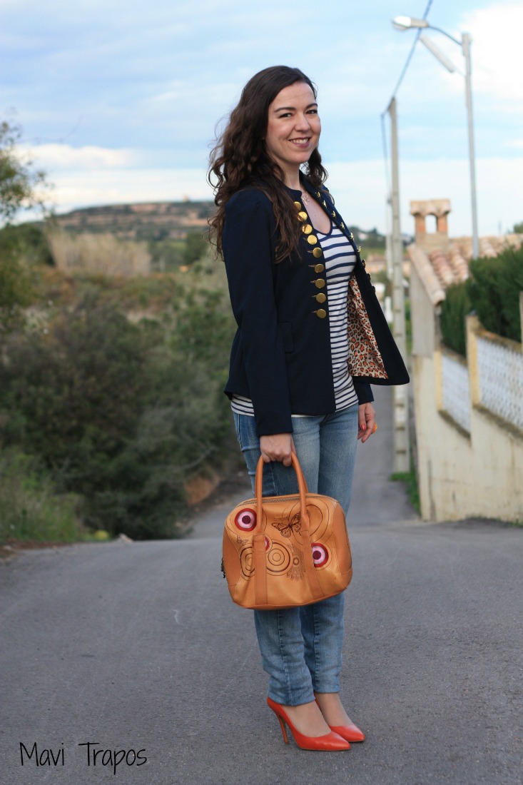 Desde que vi la primera película de Piratas del Caribe siempre me ha hecho mucha gracia el nombre de comodoro, supongo que por el personaje ¡Qué desilusión cuando descubrí que el atractivo Derek en Smash (el personaje del director) es el mismo actor que interpreta al tonto personaje de la peli de piratas! ¿y todo esto por qué? Pues porque me encanta como queda la blazer con este top navy, un rollito muy marinero ¿no? aunque le haya añadido los complementos en naranja para romper.