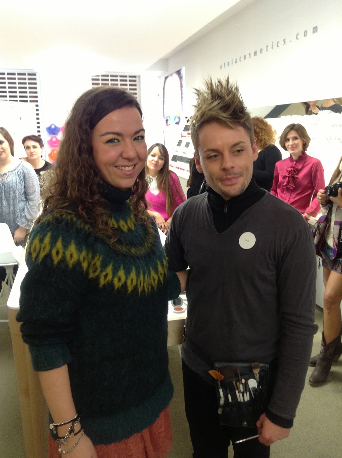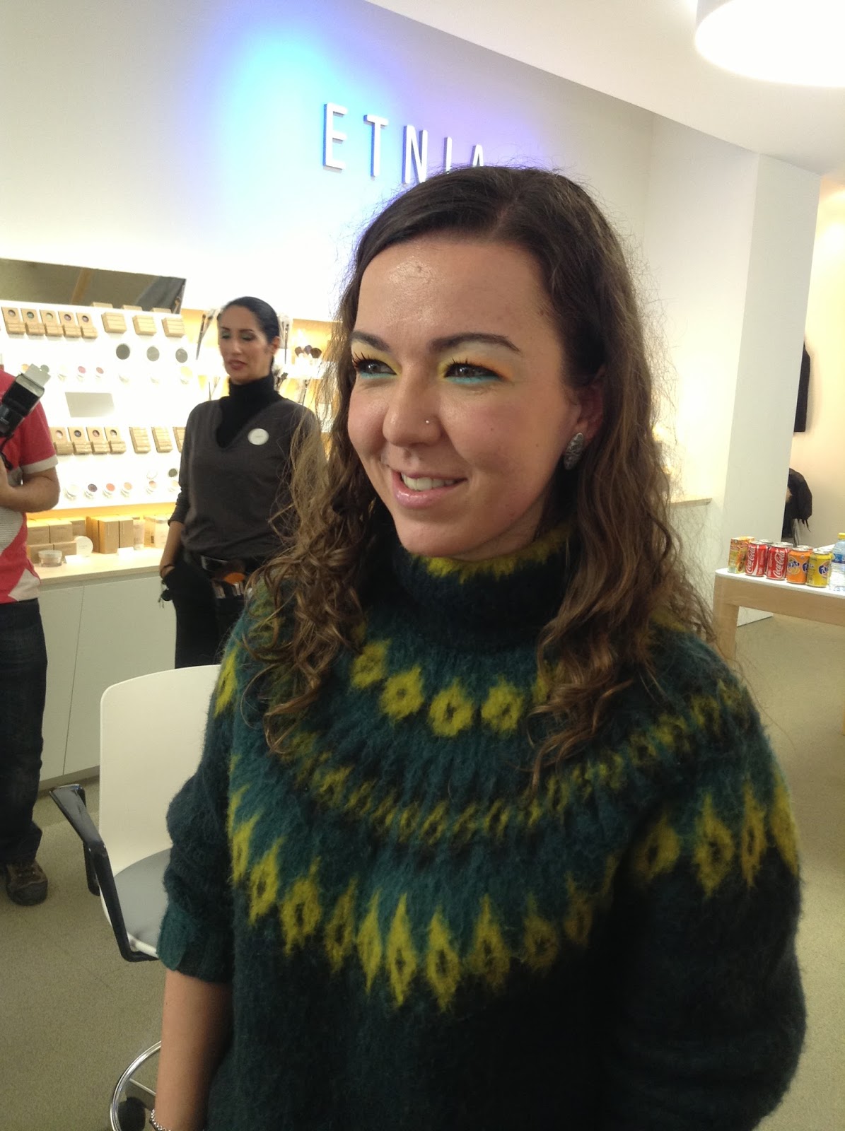 Nos hicieron una demostración de un maquillaje primaveral y aquí la voluntaria! que no pude resistirme a probar esa gama de colores, tan primaverales, pese a que el día era horrible y no paró de llover, pero yo, encantada y feliz con el maquillaje que me hizo Jacob.