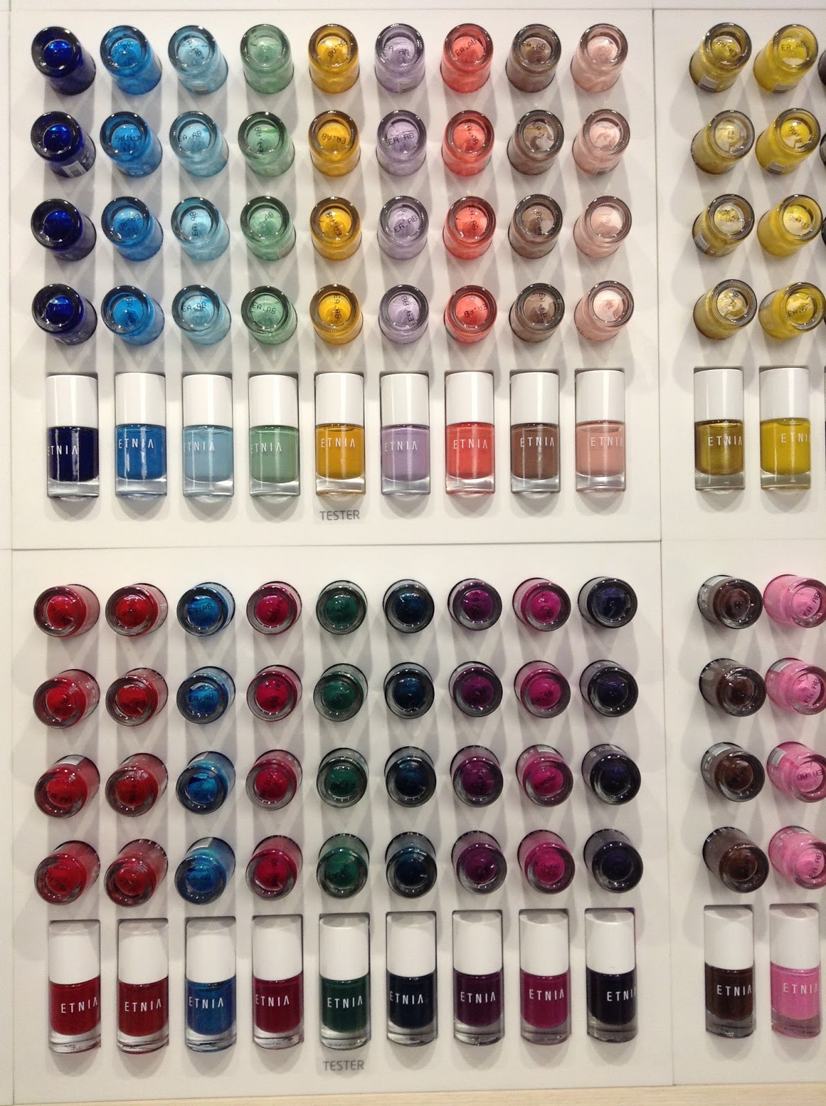 Oh dios mio si las sombras se ven chulísimas para un look totalmente primaveral, lo de la máquina de perfumes te deja sin habla, pero ya cuando he visto esos esmaltes… me he terminado de enamorar una Etnia cosmetics en Palma ya, por dios !!