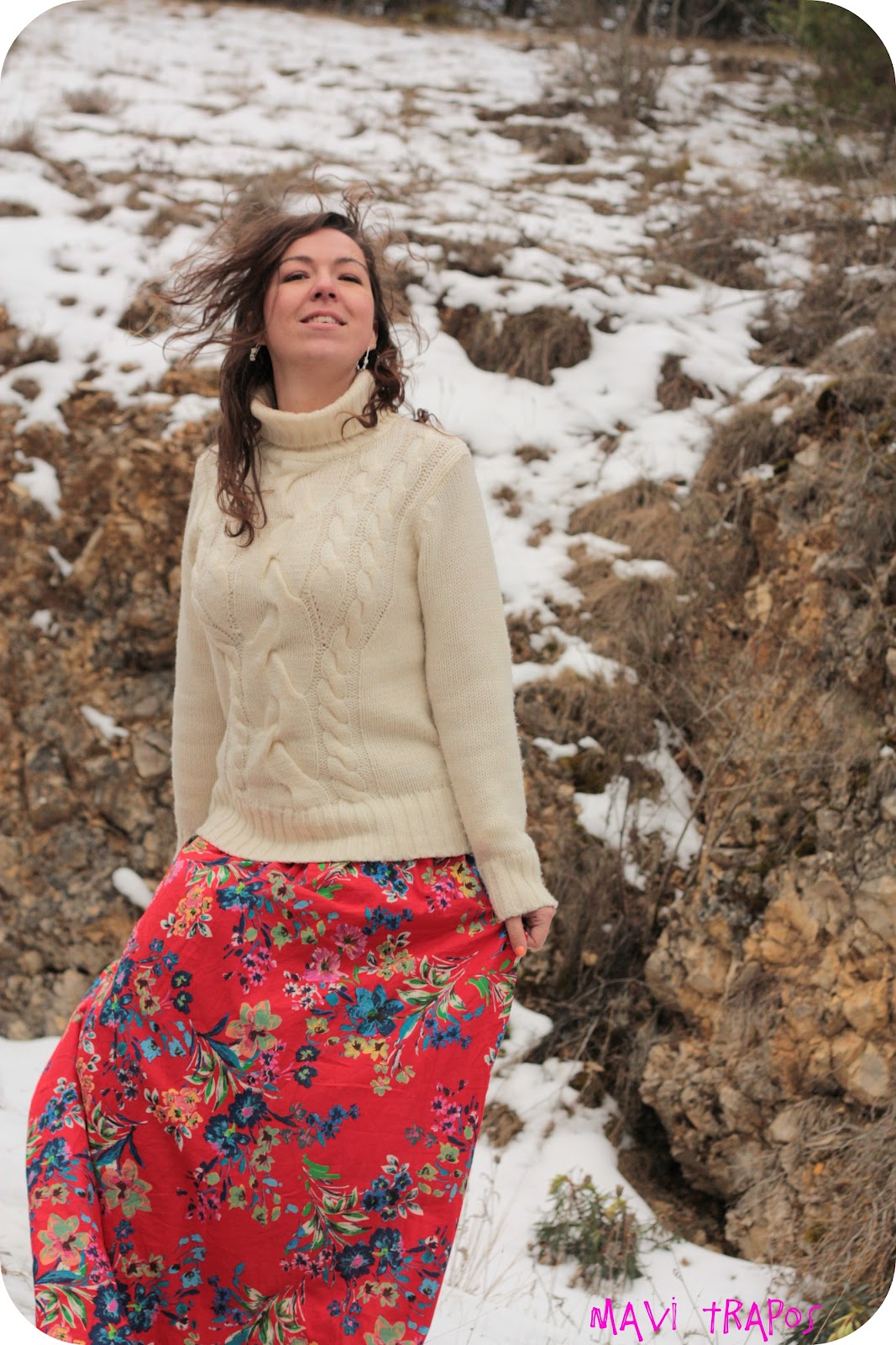El contraste de la falda con la nieve es impresionante! Yo también quiero nieve pero sin frío jooo, eso cómo se consigue? Y sí, hay colores que alegran el día 😉