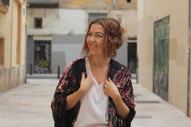 El kimono que llevo en el look de hoy, me pareció especialmente bonito, tanto por el estampado como por la combinación de tejidos utilizando el terciopelo para las flores algo que, a mi parecer, le aporta elegancia, femeninidad y hace que resalte aún más la delicadeza de su estampado.