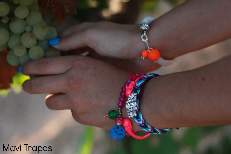 Pulseras Blanca y Naranja: Cinco Segundos, Verde y Morada: Pafois, Calaveras: Oasap, Smile: PomaPopi.