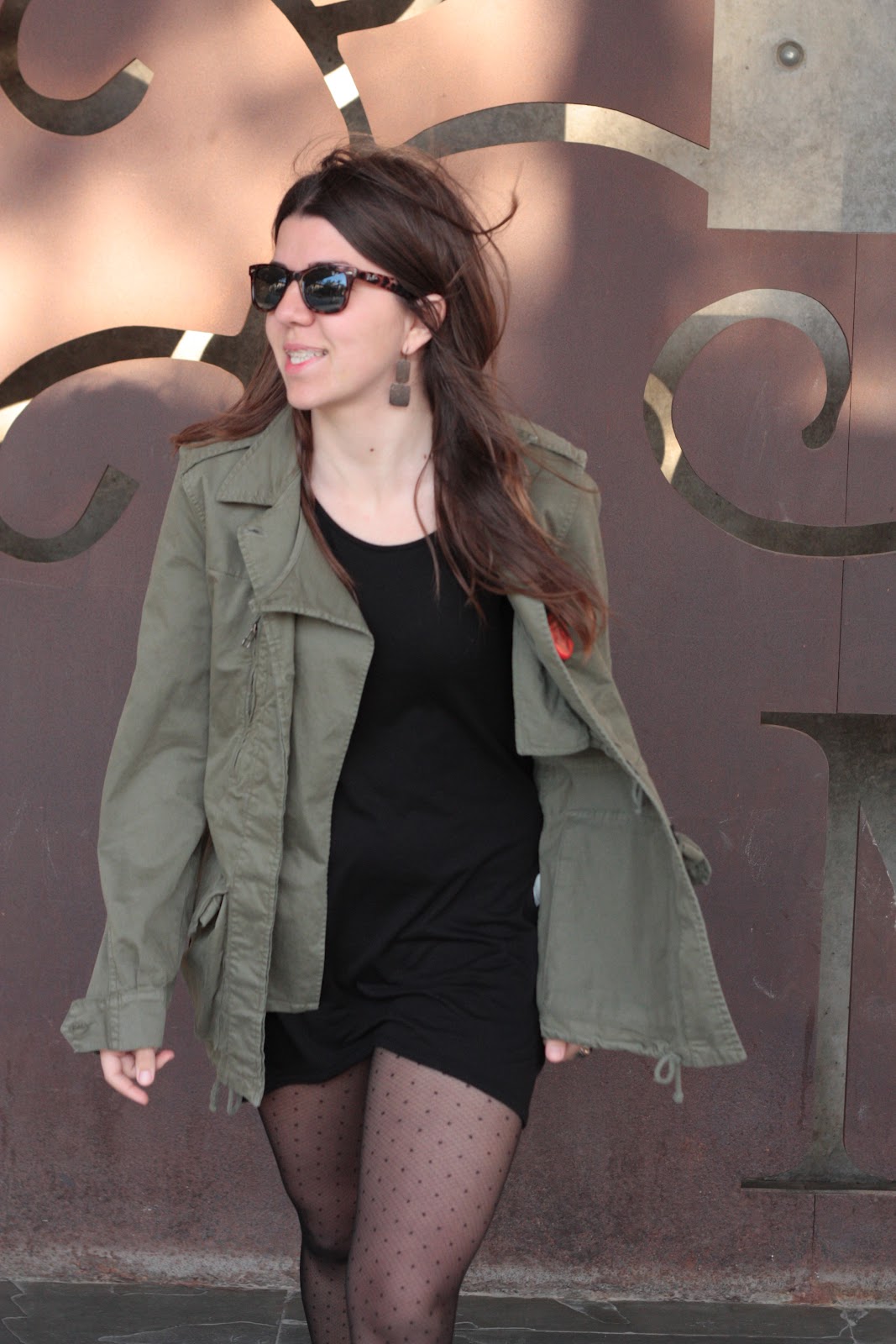 Así que a parte de enseñarte como lleva la tendencia militar con esta parka en verde oliva, este minivestido y sus bikers (todo de Zara)…
