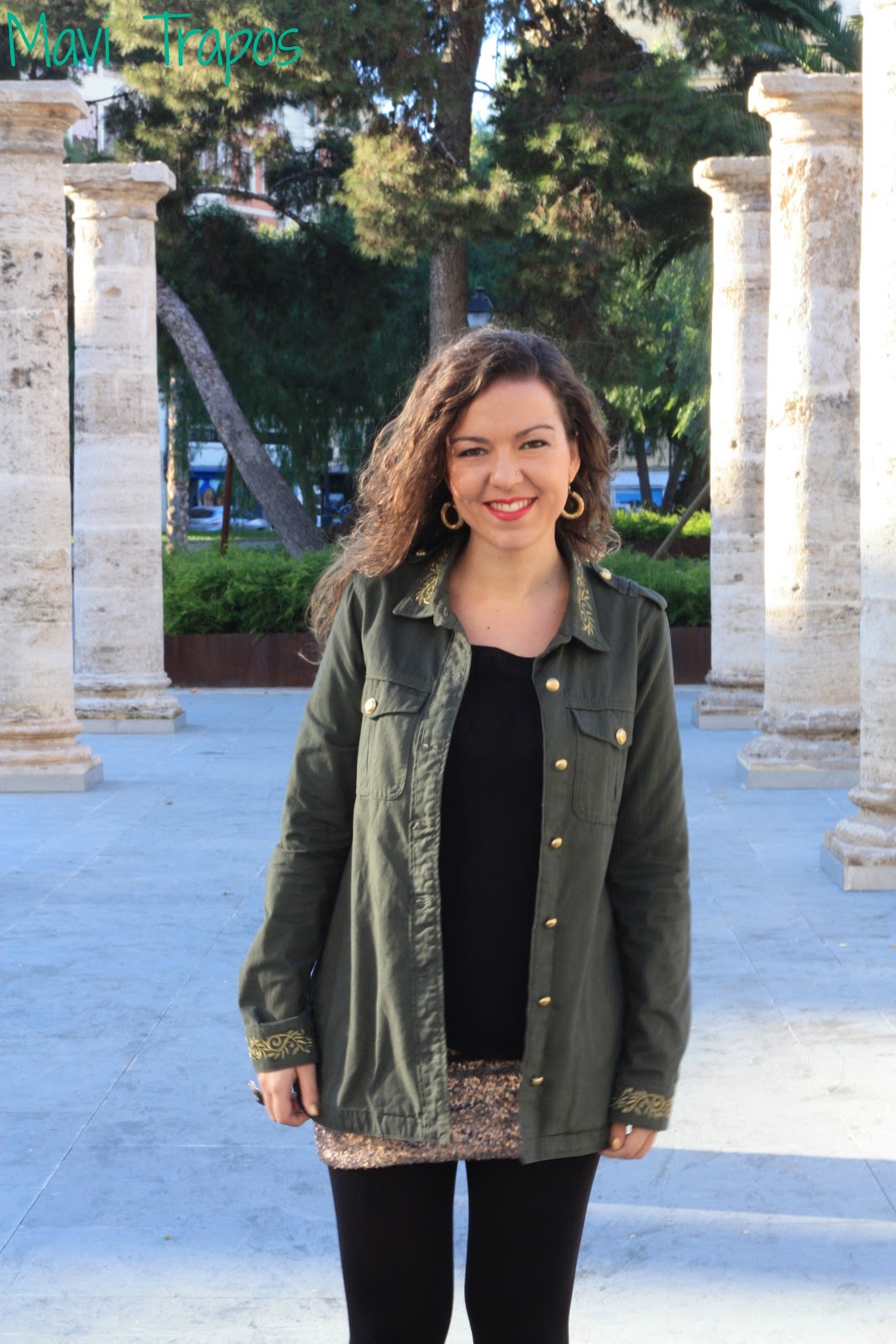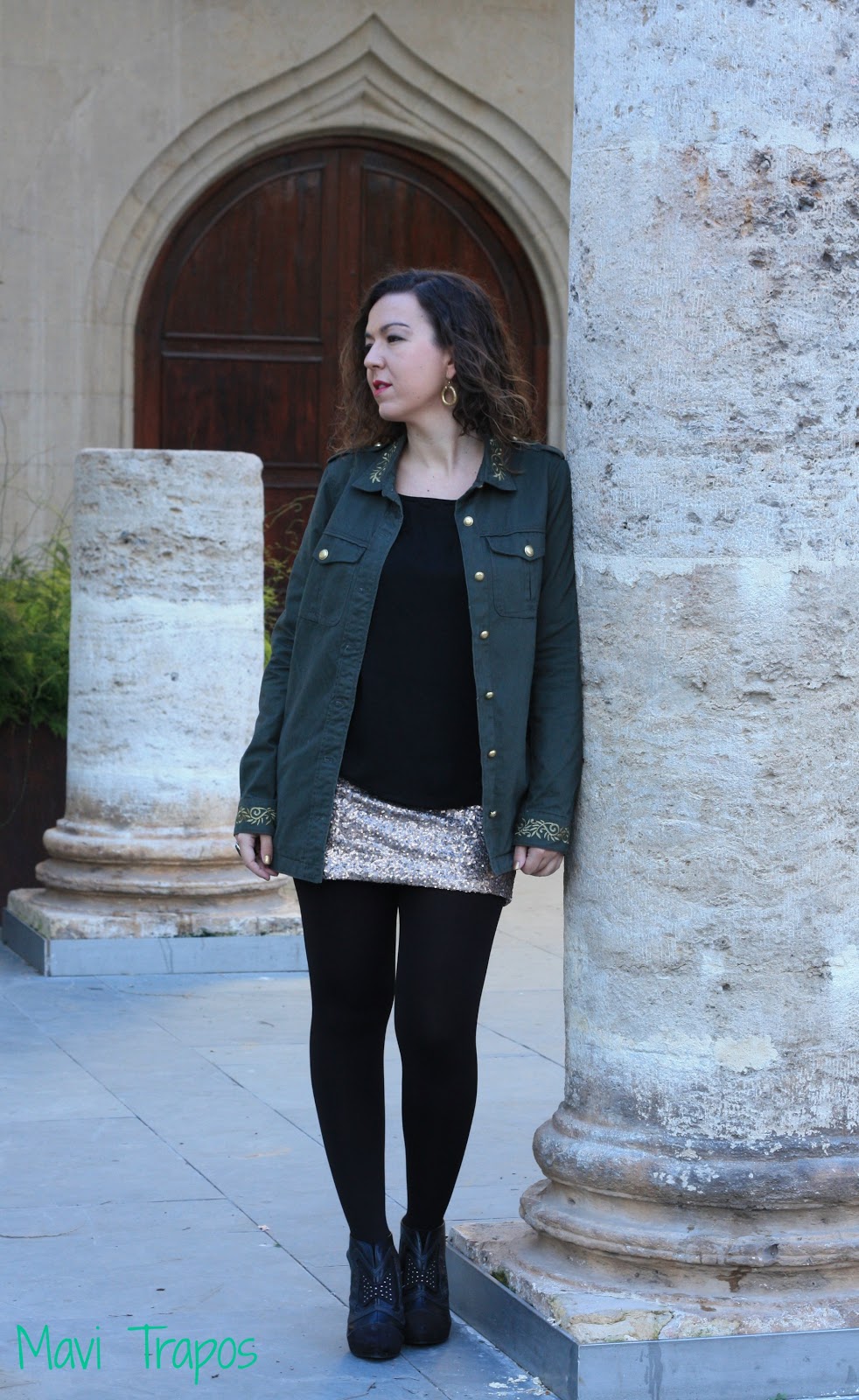 Muy guapa! me encanta la mezcla militar y lentejuelas