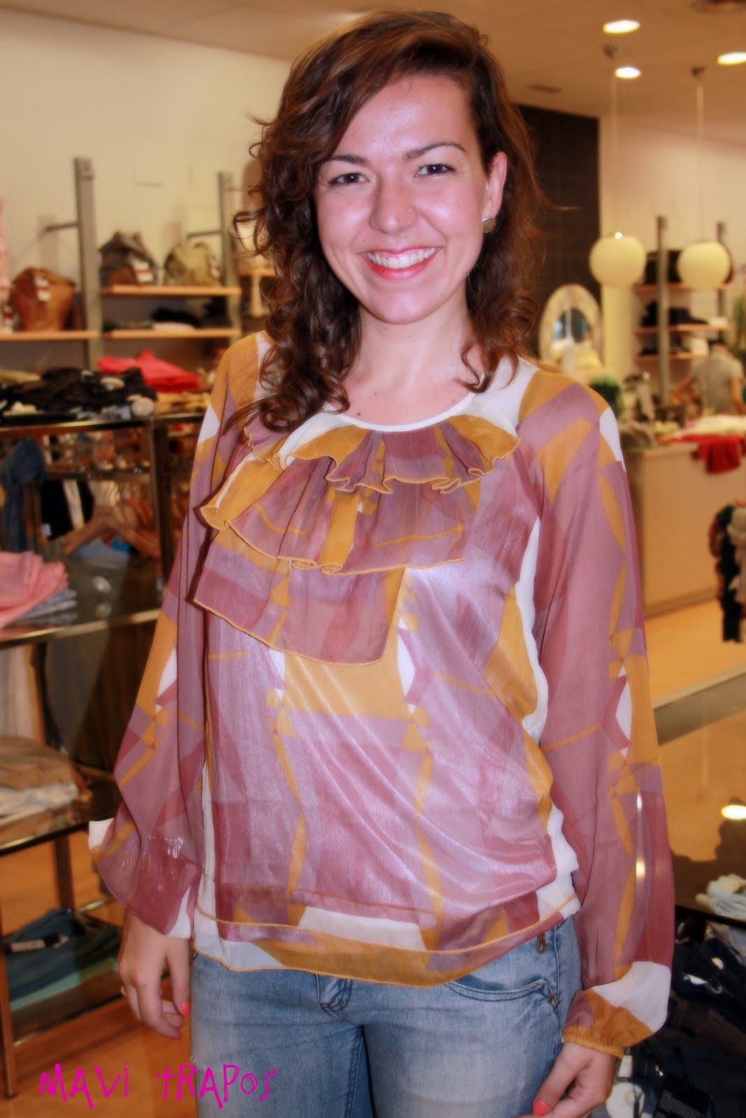 Una camisa ideal para trabajar y salir directa a tomar una copa, de shopping o donde sea con tal de lucirla (es la misma que la de la segunda foto) además combina de forma increíble el color mostaza con el berenjena y bueno, lo mejor la pechera y las mangas transparentes, otra de mis debilidades.