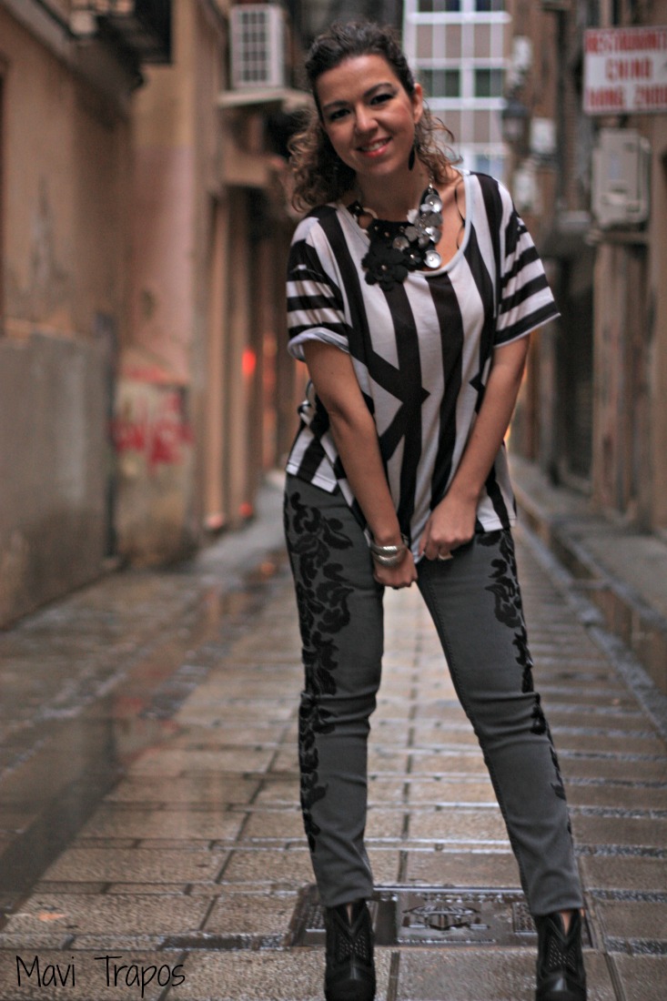 Miralo ella ya con la tendencia de la temporada: las rayas blancas y negras!