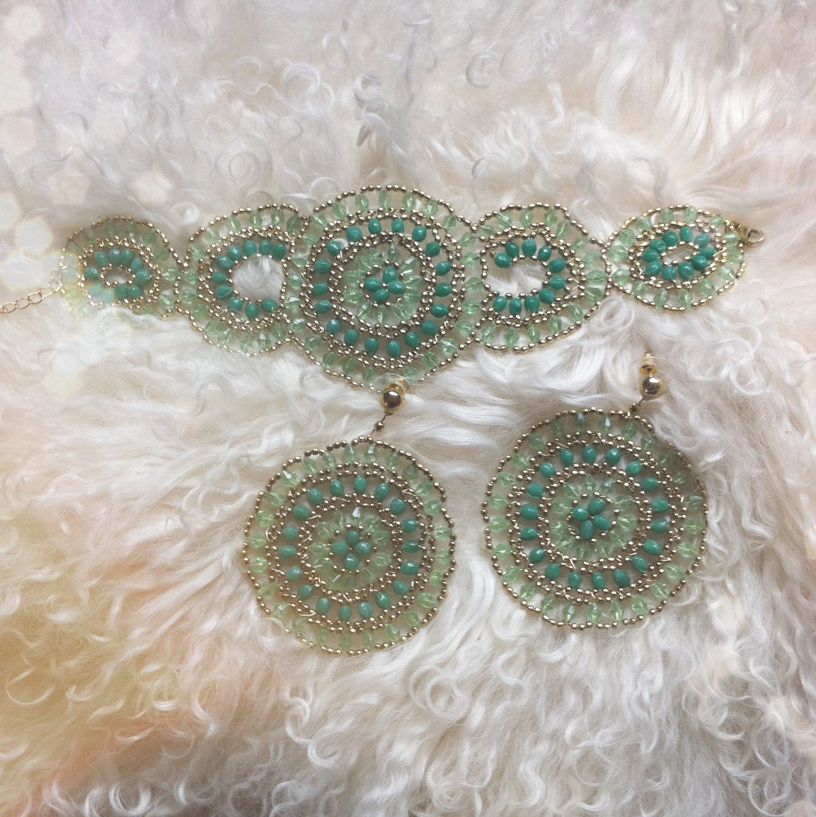 No es la primera vez que colaboro con Los Complementos de María, así que sí te quedaste con las ganas de poder lucir un conjunto como este, ahora tienes una nueva oportunidad pero esta vez en oro combinado con verde menta y esmeralda, el color del año por excelencia.