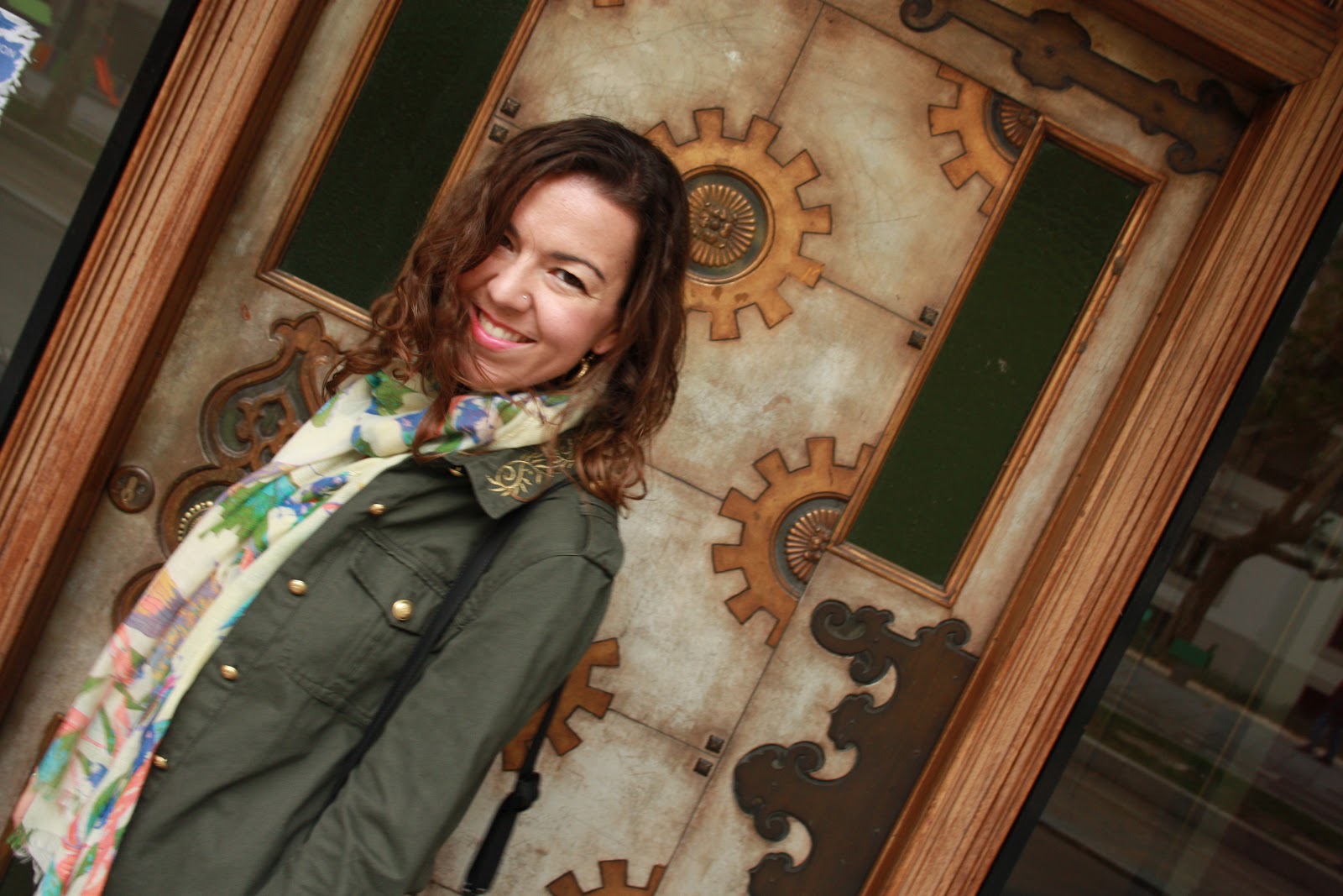 El otro look que elegí para pasear por Zaragoza también fue de lo más cómodo: mis pantalones tipo cuero que ya viste AQUI, mis adoradas y comodísimas sneakers AQUI (últimamente no me las quito), un pañuelo de Lisboa, el bolso de El Corte Inglés y mi chaqueta militar, me encanta el color verde oliva con el bordado del cuello y los puños en dorado, es de Zara.