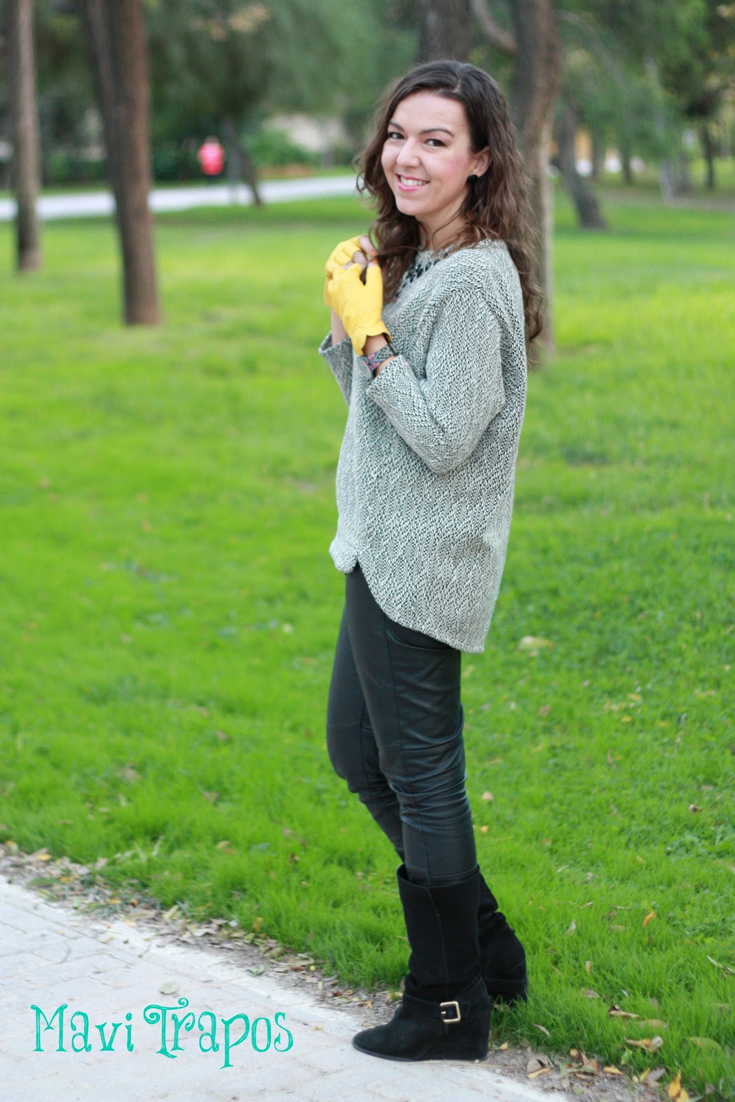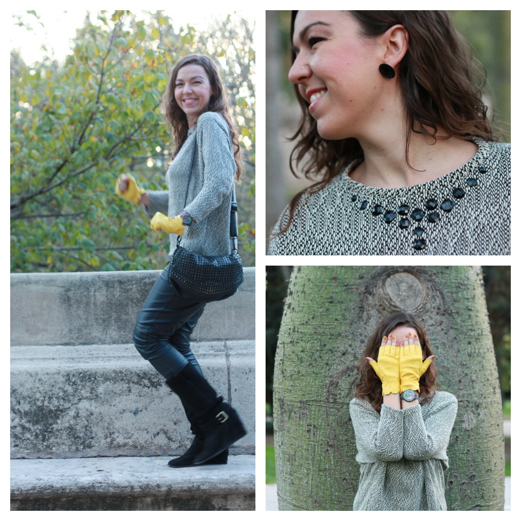 No me gusta el cambio de luz del otoño ni los días más cortos y grises, parece que hasta afecte en nuestro estado de ánimo y eso se nota a la hora de vestir, así que aunque el look sea en gris y negro, decidí darle un toque de color con mis mitones amarillos.