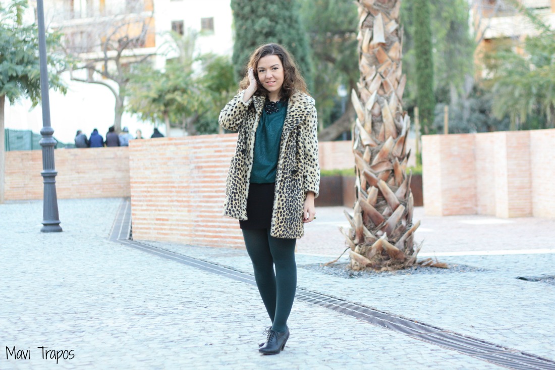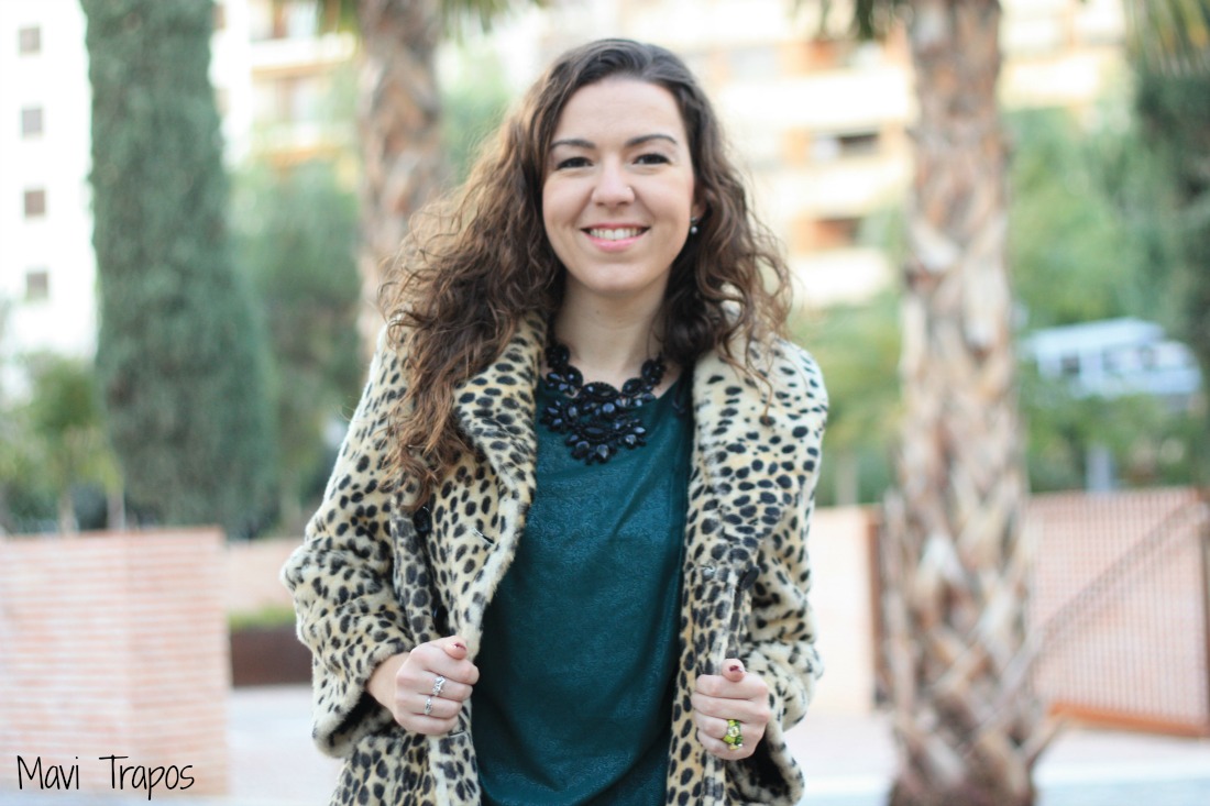 qué guapa. me gusta mucho la mezcla del verde esmeralda con el abrigo de leopardo y además como le has añadido ese collar, genial. Y bueno, yo creo que la gente de fuera no le da importancia al tema de los blogs y no entiendes que a través de este mundo se conocen personas maravillosas, como tu dices…