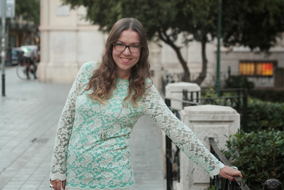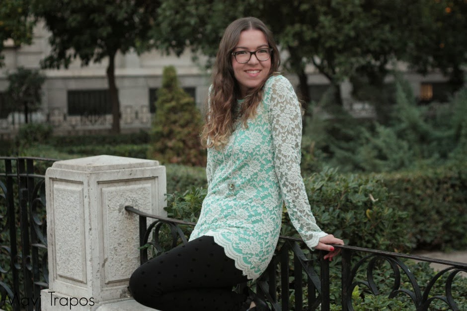 Quiero enseñaros un look de la semana pasada. En Valencia, seguimos con un pseudo-otoño de 24º grados así que con unos leggins, y una camisa con mangas de encaje, dependiendo de la hora del día, igual hasta pasas calor. Me gusta el aire romántico-sesentero del suéter y creo que queda genial con el colgante y el anillo de las mariposas, tan lady!!