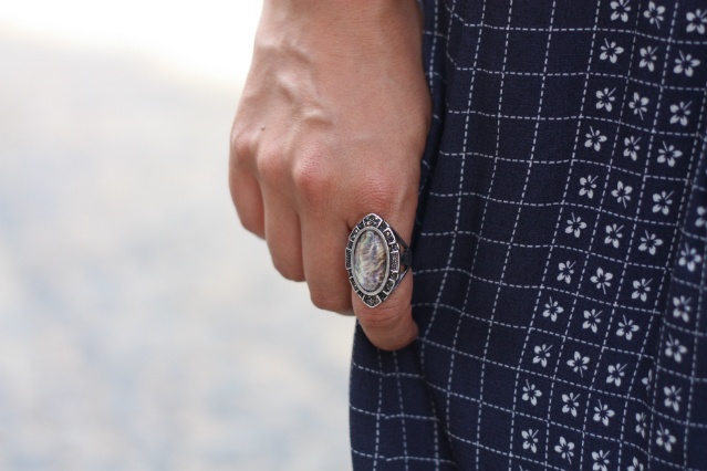Soy muy fan tanto de los vestidos largos como de las faldas largas. Además de cómodos, me parecen perfectos para esconder o lucir taconazos, eso va al gusto. Este vestido de aire vintage me tenía loquita, así que fue uno de los regalos de mi cumpleaños, y como no, me faltó tiempo para estrenarlo, al igual que el anillo, la cartera y la pulsera de plata, una de esas joyas antiguas con un excelente trabajo de orfebrería.